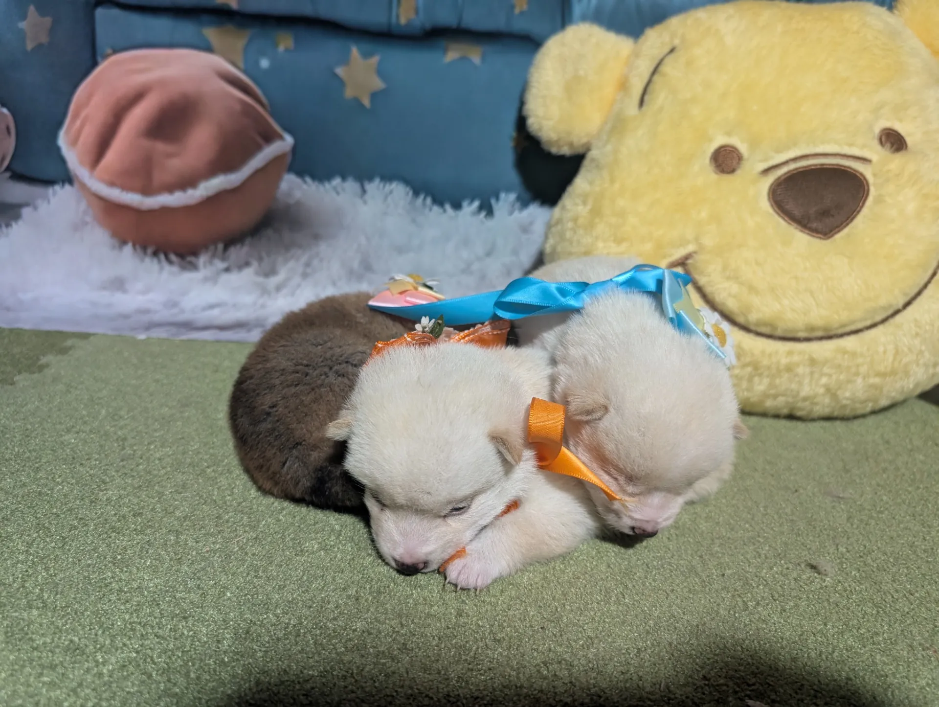 ふわふわリボンが似合う、ぬいぐるみのような豆柴赤ちゃんたちがすくすく成長中です♪